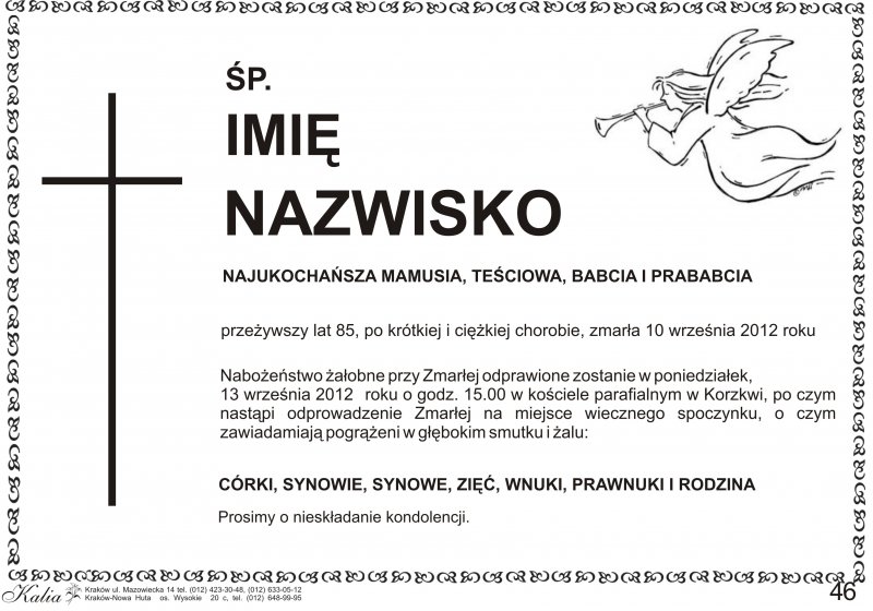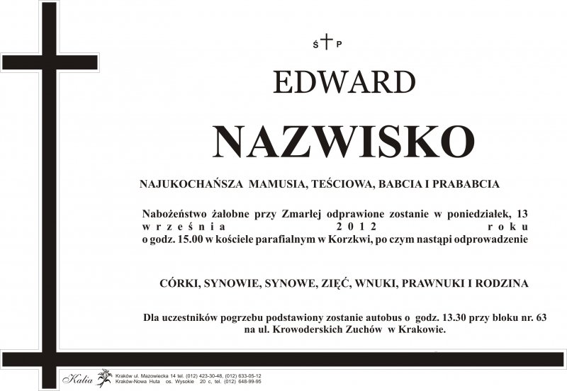 Bardzo dziękuję za wsparcie, pomoc i obsługę pogrzebu naszej ukochanej mamy WSZYSTKIM PRACOWNIKOM FIRMY. Pełen profesjonalizm i co ważne zrozumienie dla nas pełnych bólu i żalu.